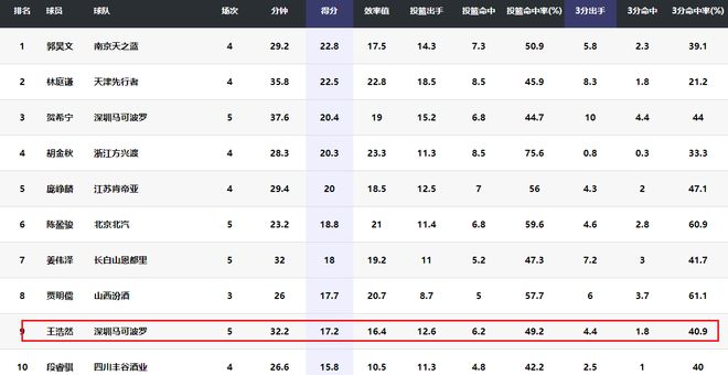來(lái)到CBA聯(lián)賽,王浩然第一場(chǎng)得到8分8籃板,第二場(chǎng)得到21分4籃板,第三場(chǎng)貢獻(xiàn)26分8籃板,第四場(chǎng)得到18分5籃板,第五場(chǎng)得到15分7籃板。王浩然場(chǎng)均得到17.2分排名本賽季本土球員得分榜第九,場(chǎng)均搶到6.4個(gè)籃板排名本土球員籃板榜第十。