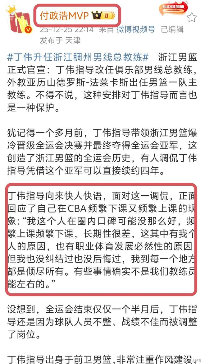 對于“丁團長”來講,這已經(jīng)是他第8次從主教練崗位上下崗了。2010年:擔(dān)任浙江隊主帥,最后下崗;2015年:再度擔(dān)任浙江隊主帥,不久后下崗;2016年:擔(dān)任同曦隊主帥,不久后下崗;2017:擔(dān)任北控隊主帥,然后下崗;2020年:擔(dān)任廣州隊主帥然后下崗;2020年9月:擔(dān)任山西隊主帥,然后下崗;2023:擔(dān)任山東隊主帥,然后下崗;2025年,再次重返浙江隊任球隊主帥,如今又下課。